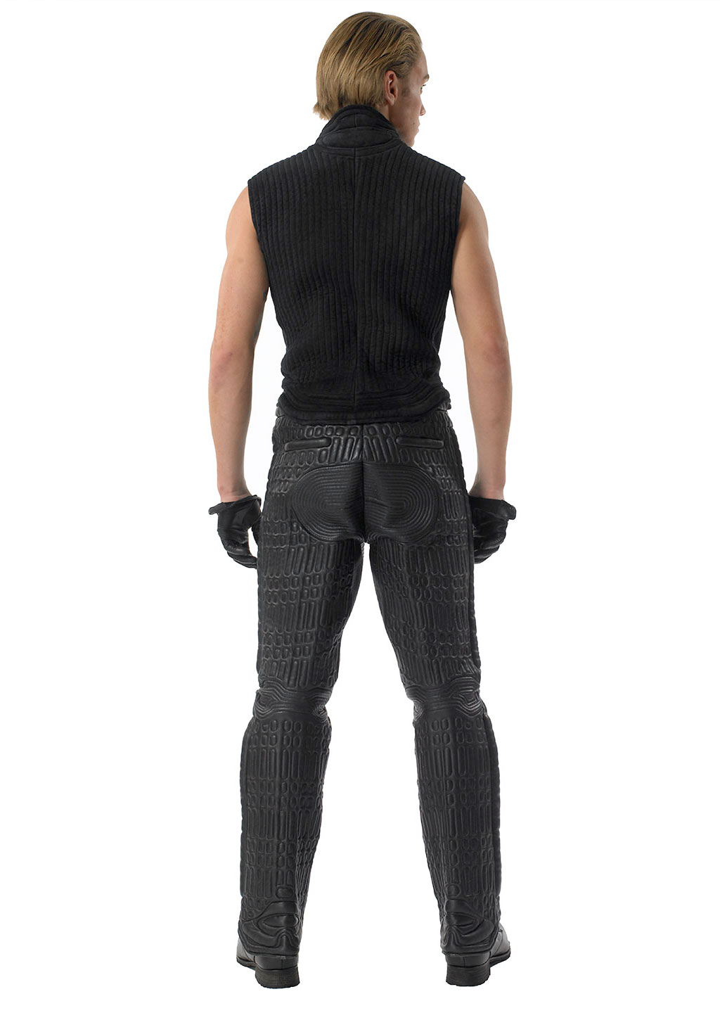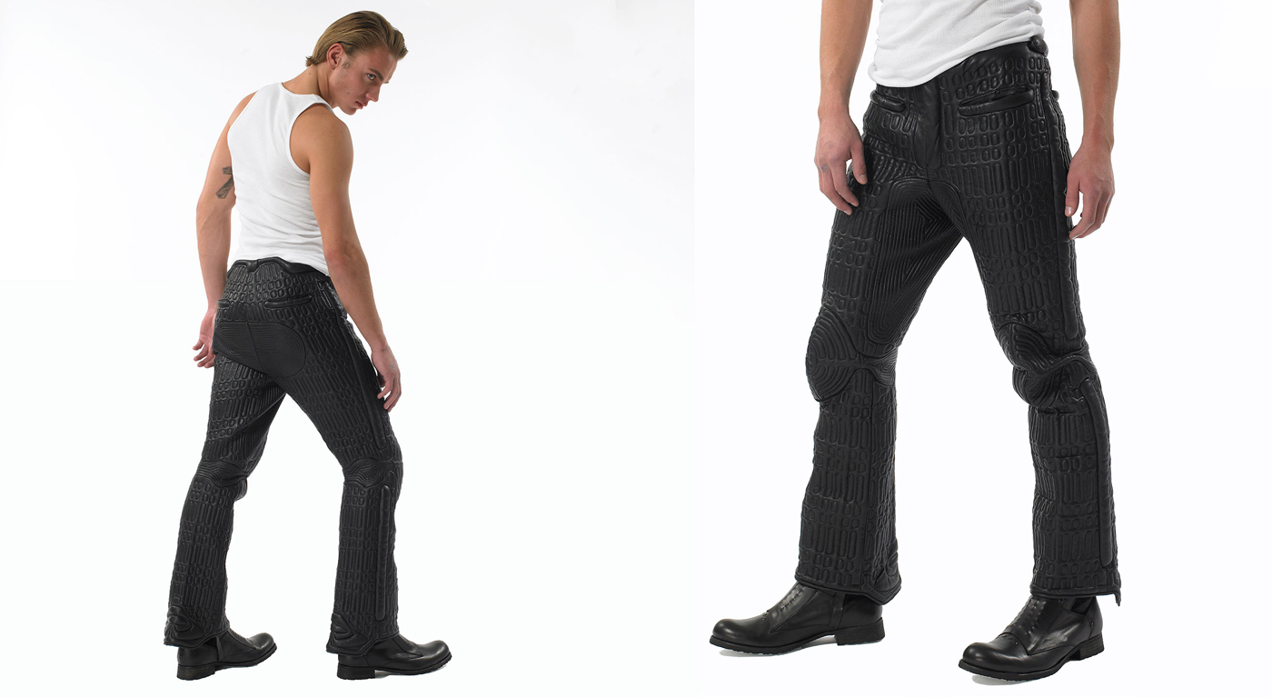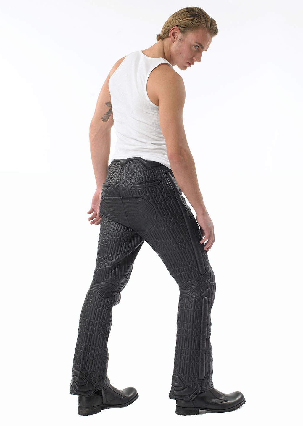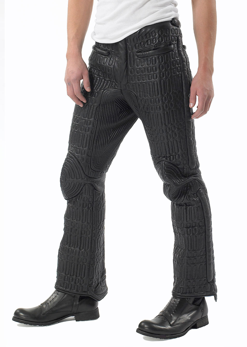 HAND QUILTED CUSTOM MADE NAVY KIDD LEATHER MOTORCYCLE PANTS.