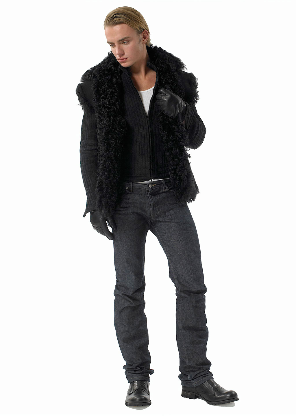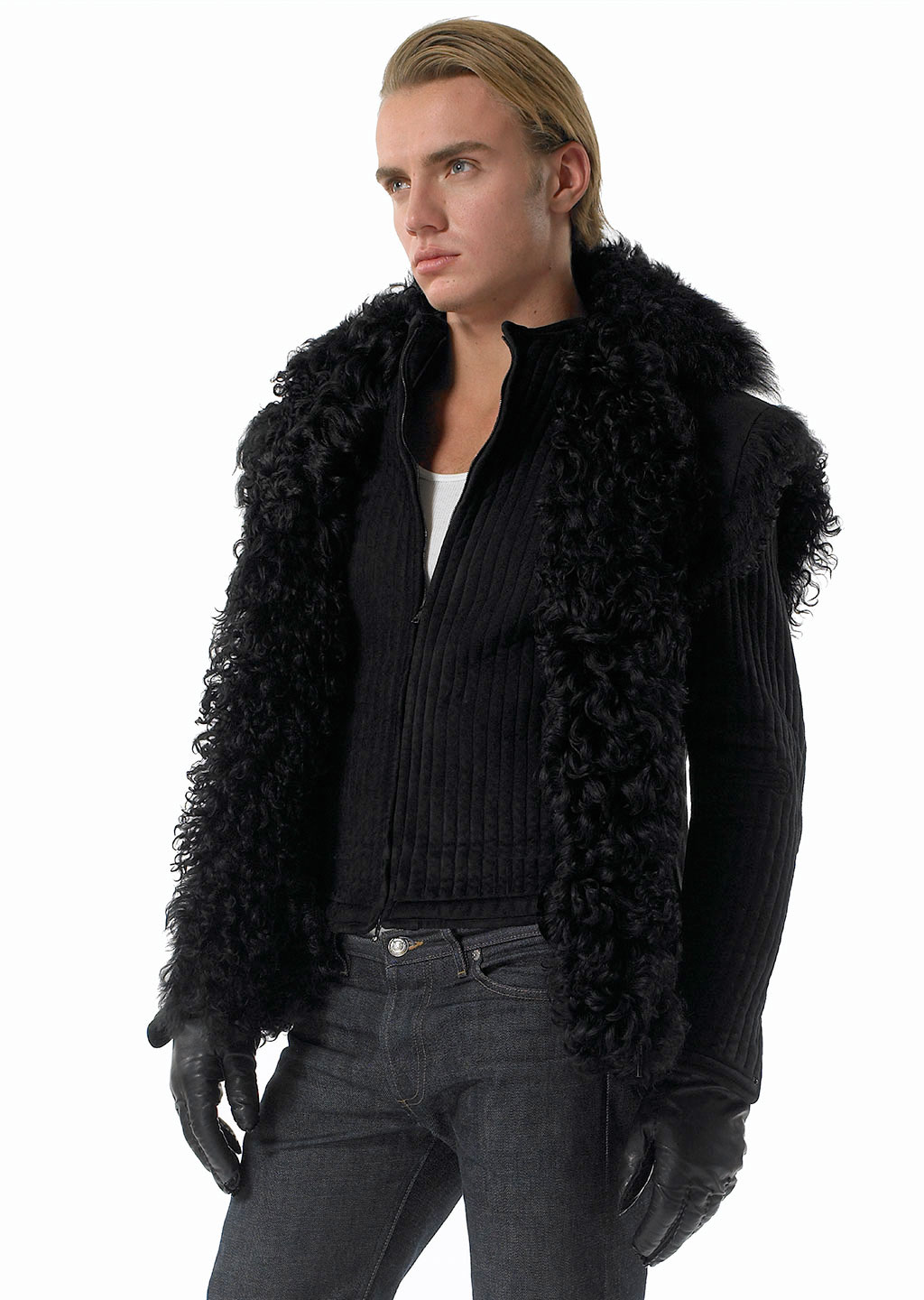 KARAKUL SHEARLING JACKET, LAMB LEATHER AND SILK LINED SHIRT, CUSTOM GLOVES.