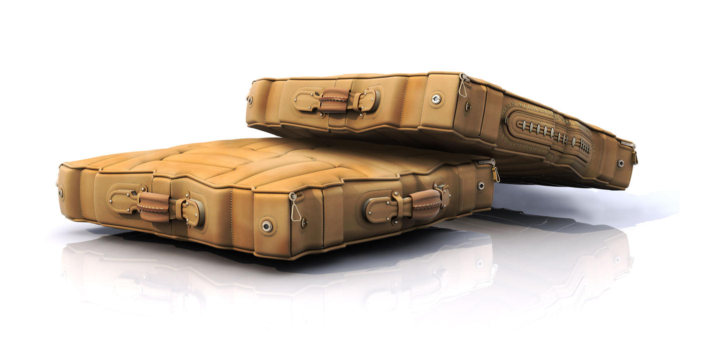 STACKED 3 FOOT X 3 FOOT BUFF LEATHER FLOOR CUSHIONS.
